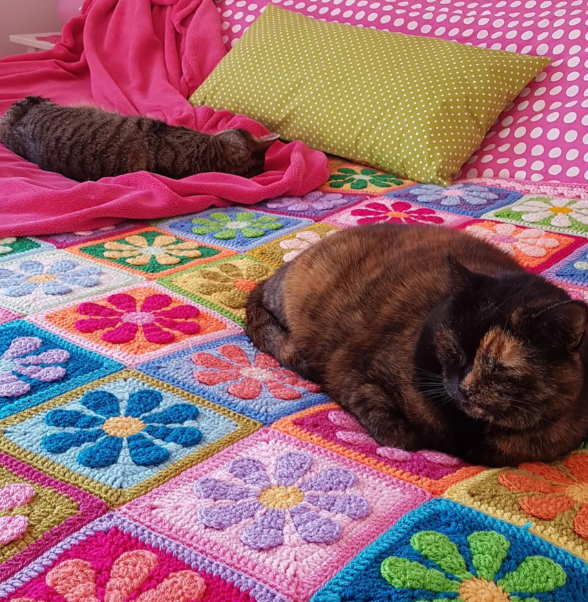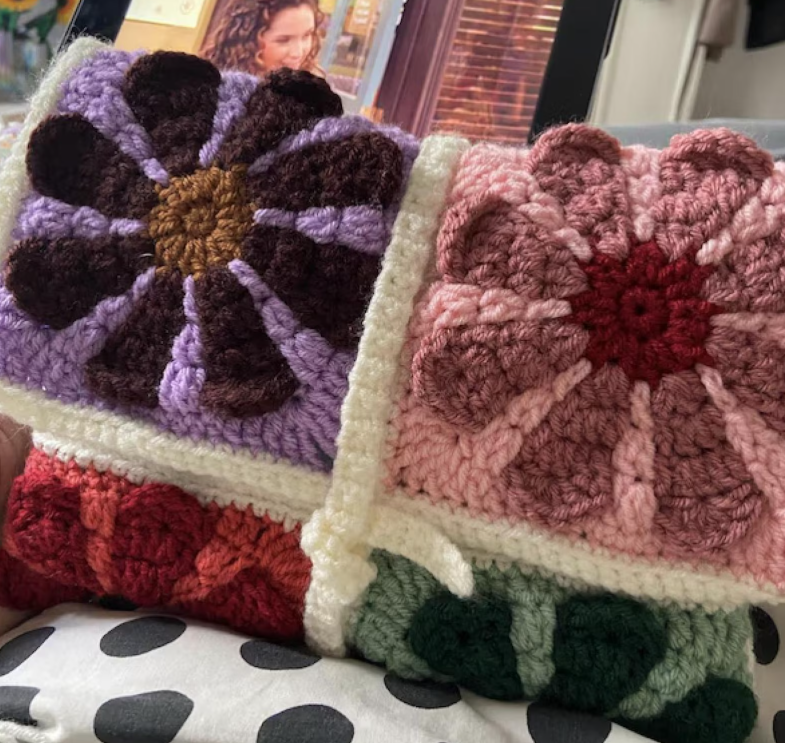 - **3D Retro Flower Design**: The pattern features a stunning 3D daisy flower at the center of each granny square, adding depth and texture to your creations.