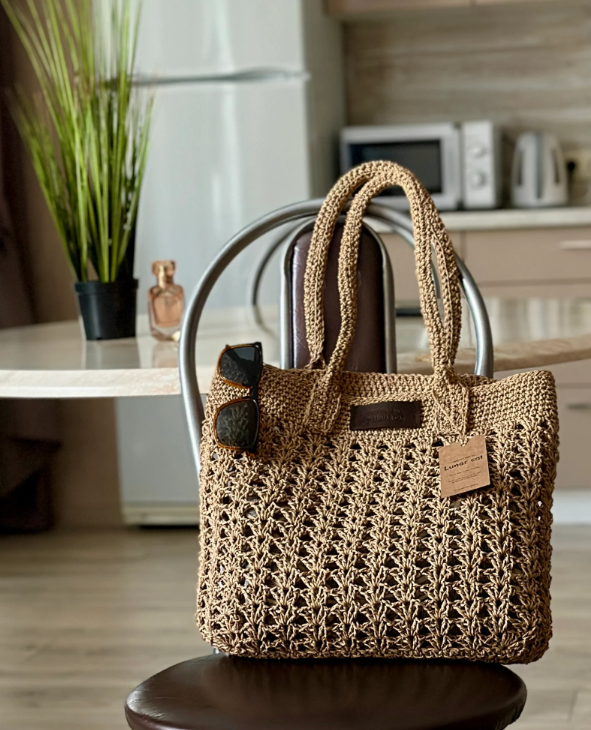 ✔ Twisted raffia yarn (paper yarn) - 300 gr (approx. 520 meters/570 yds). Alternative materials: ribbon raffia (Ispie or other), doudle twisted jute rope, polyester rope 2-2.5 mm, other yarns.