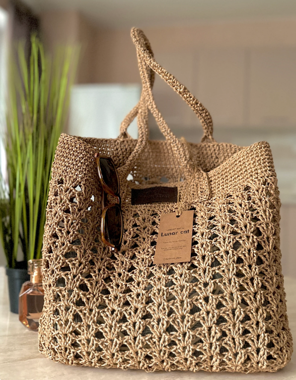 🧶 Crochet PATTERN Raffia Soft Beach Aesthetic Bag Oversize Slouchy Straw Summer Handbag Granny Square Crochet Purse 🌸